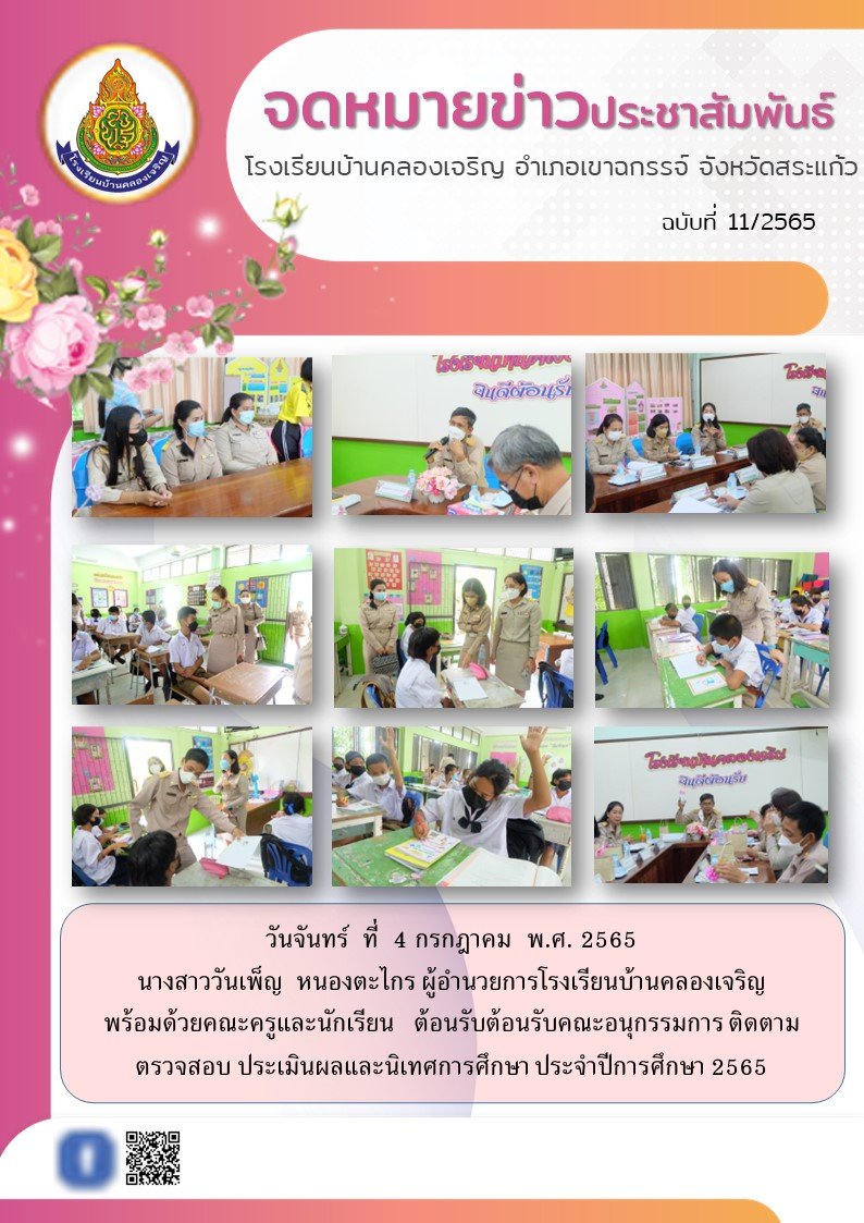 วันที่ 4 กรกฎาคม 2565 นางสาววันเพ็ญ หนองตะไกร ผู้อำนวยการโรงเรียนบ้านคลองเจริญ พร้อมด้วยคณะครูและนักเรียน ต้อนรับคณะอนุกรรมการ ติดตาม ตรวจสอบ ประเมินผลและนิเทศการศึกษา ประจำปีการศึกษา 2565