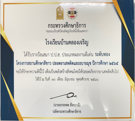 รางวังโรงเรียนที่มีผลการประเมิณคุณภาพผู้เรียน(NT)ปีการศึกษา2565เฉลี่ยด้านภาษาไทยและด้านคณิตศาสตร์สูงกว่าระดับประเทศ