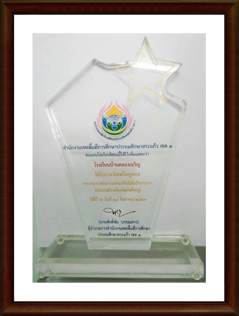 | โครงการ : ห้องสมุดปลูกนิสัยรักการอ่าน 	สพฐ. มีนโยบายส่งเสริมการอ่านและการสร้างนิสัยรักการอ่านและมุ่งพัฒนาห้องสมุดโรงเรียนให้เป้นแหล่งเรียนรู้ โรงเรียนได้ดำเนินโครงการห้องสมุดปลูกนิสัยรักการอ่าน โดยมีทีมยุวบรรณารักษ์ส่งเสริมการอ่านเป็นทีมขับเคลื่อนกิจกรรมส่งเสริมนิสัยรักการอ่าน " 9 กิจกรรม ก้าวล้ำนำสู่การอ่าน" ทางโรงเรียนได้เข้าร่วมประกวดโครงการประกวดกิจกรรมส่งเสริมนิสัยรักการอ่านและมาตราฐานห้องสมุดโรงเรียน ( ห้องสสมุด 3 ดี ) ตั้งแต่ปีการศึกษา 2557 - 2558 และได้รับโล่รางวัลเหรียญทอง 2 ปี คือ 	1. โล่รางวัลเหรียญทองกิจกรรมส่งเสริมนิสัยรักการอ่านและมาตราฐานห้องสมุดโรงเรียน  (ห้องสมุด 3 ดี ) ปีการศึกษา 2558 จาก สพป.สก.1 	2. โล่รางวัลเหรียญทองกิจกรรมส่งเสริมนิสัยรักการอ่านและมาตราฐานห้องสมุดโรงเรียน  (ห้องสมุด 3 ดี ) ปีการศึกษา 2557 จาก สพป.สก.1 |