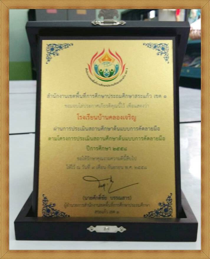 | โครงการ : พัฒนาทักษะการอ่านออก เขียนได้ อ่านคล่อง เขียนคล่อง 	 สพฐ. มีนโยบายพัฒนาการเรียนการสอนภาษาไทยโดยได้ดำเนินการพัฒนาการคัดลายมือตามอย่างวัฒนธรรมไทย สพป.สระแก้ว เขต 1ได้จัดทำโครงการประเมินสถานศึกษาต้นแบบการคัดลายมือ โดยมีจุดมุ่งหมายให้ผู้บริหาร ครูและนักเรียน ได้พัฒนาลายมือตามแบบกรมวิชาการ โรงเรียนได้เข้าร่วมโครงการและได้รับการคัดเลือกเป็นสถานศึกษาต้นแบบการคัดลายมือ ของ สพป.สระแก้ว เขต 1 |