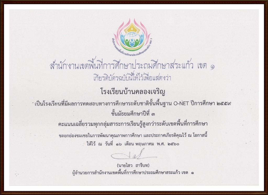 โรงเรียนที่มีผลการทดสอบทางการศึกษาระดับชาติขั้นพื้นฐาน O-NET ปีการศึกษา ๒๕๕๙ ชั้นมัธยมศึกษาปีที่ ๓