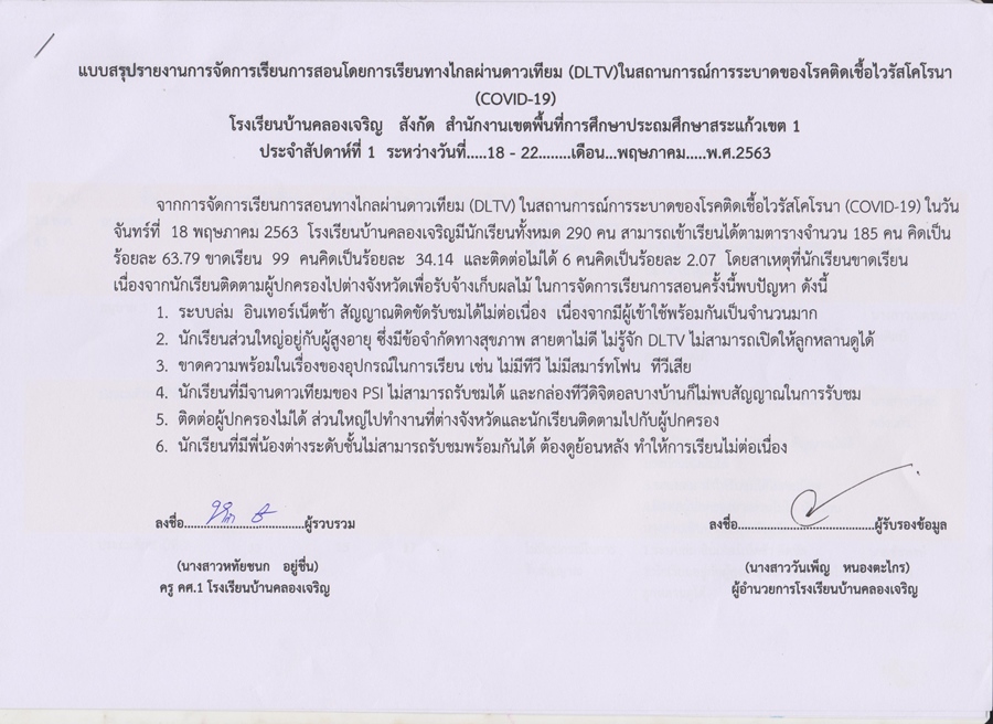 แบบสรุปรายงานการจัดการเรียนการสอนโดยการเรียนทางไกลผ่านดาวเทียม(DLTV) ประจำสัปดาห์ที่ 1 ระหว่างวันที่